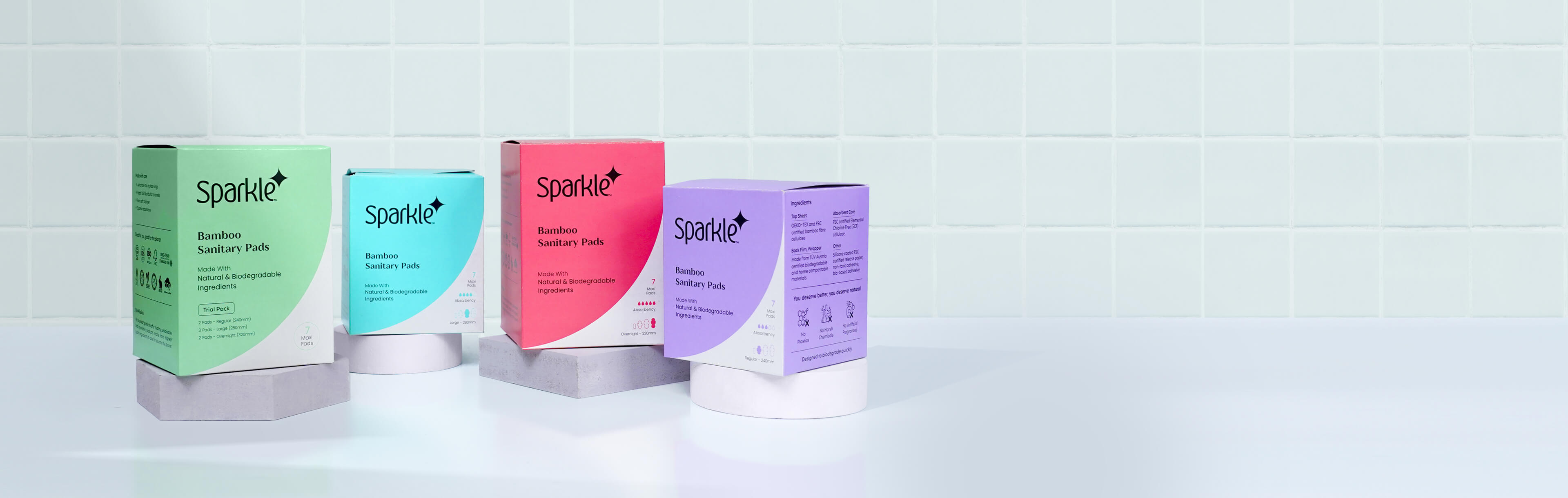 We use a portion of profits from each Sparkle purchase to provide pads to menstruators in need