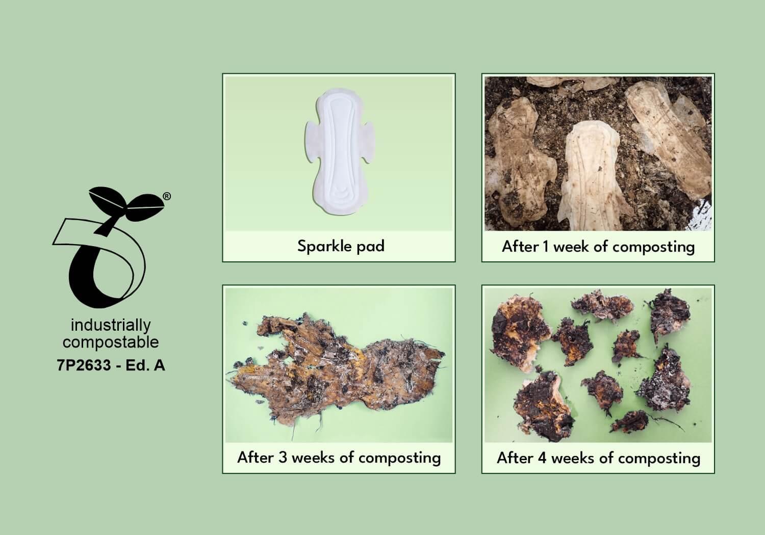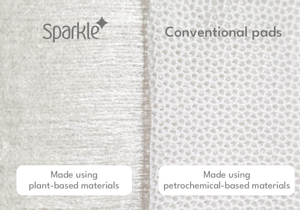We have designed the Sparkle pad in such a way that whether it ends up in an industrial composting facility or even in a landfill, it offers a more sustainable alternative when compared to its conventional counterpart.