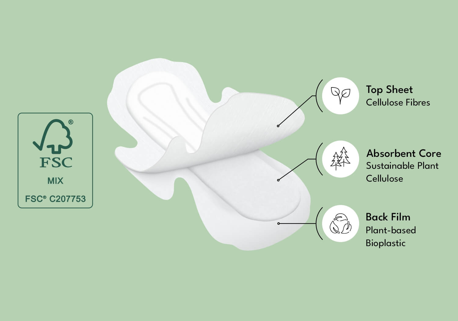 Conventional pads that contain large amounts of plastic pollute the planet for around 500 years.