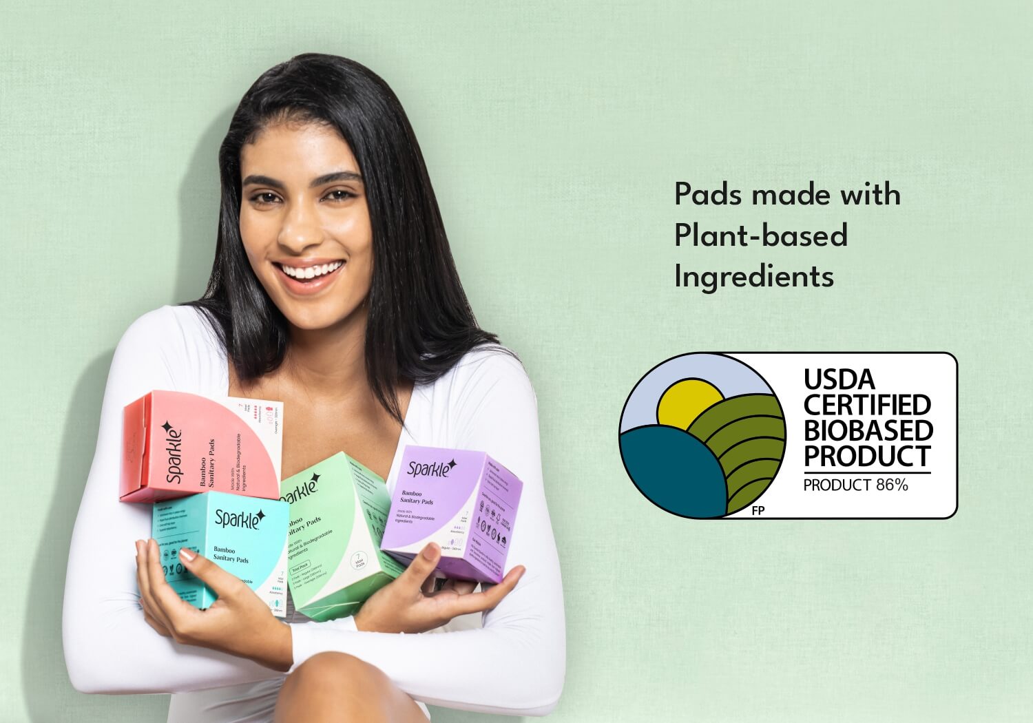 In Sparkle pads, we do not use conventional plastics in any of the layers; instead, we use plant-based materials, making it the most skin-friendly and planet-friendly choice!