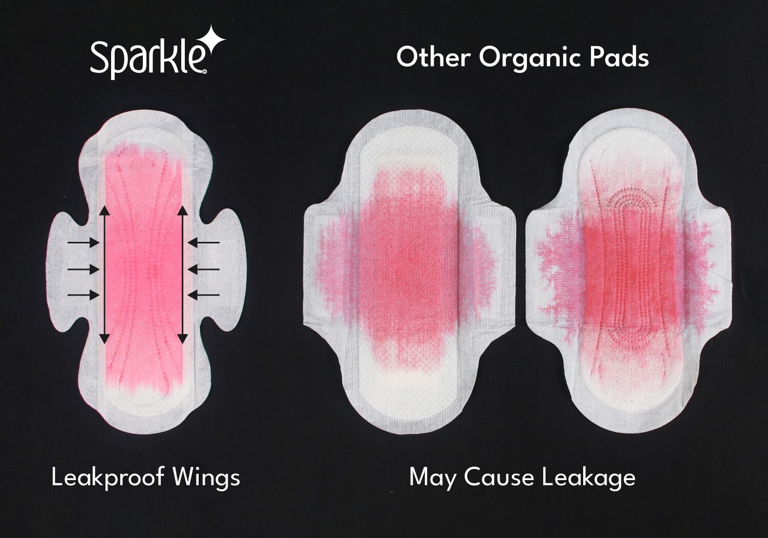 While many people think plant-based pads don’t work or they leak from the sides, Sparkle pads have been especially designed with advanced leakproof wings, rapid fluid distribution channels, and side barriers to prevent accidental leaks.