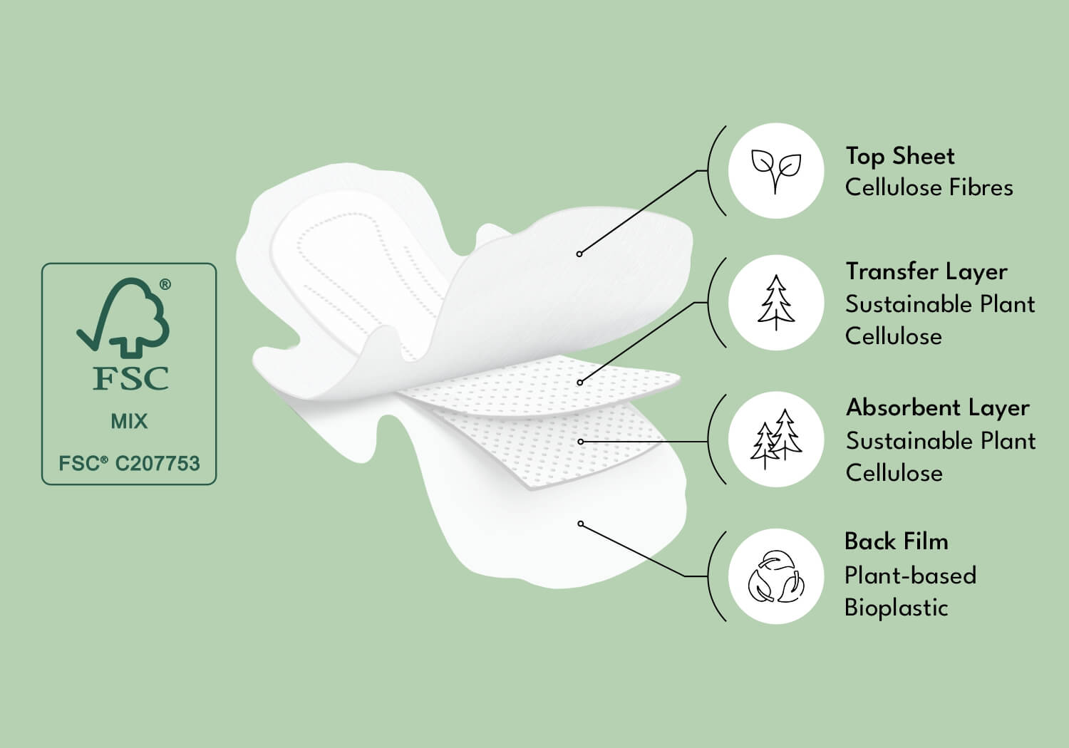 Conventional pads that contain large amounts of plastic pollute the planet for around 500 years.
